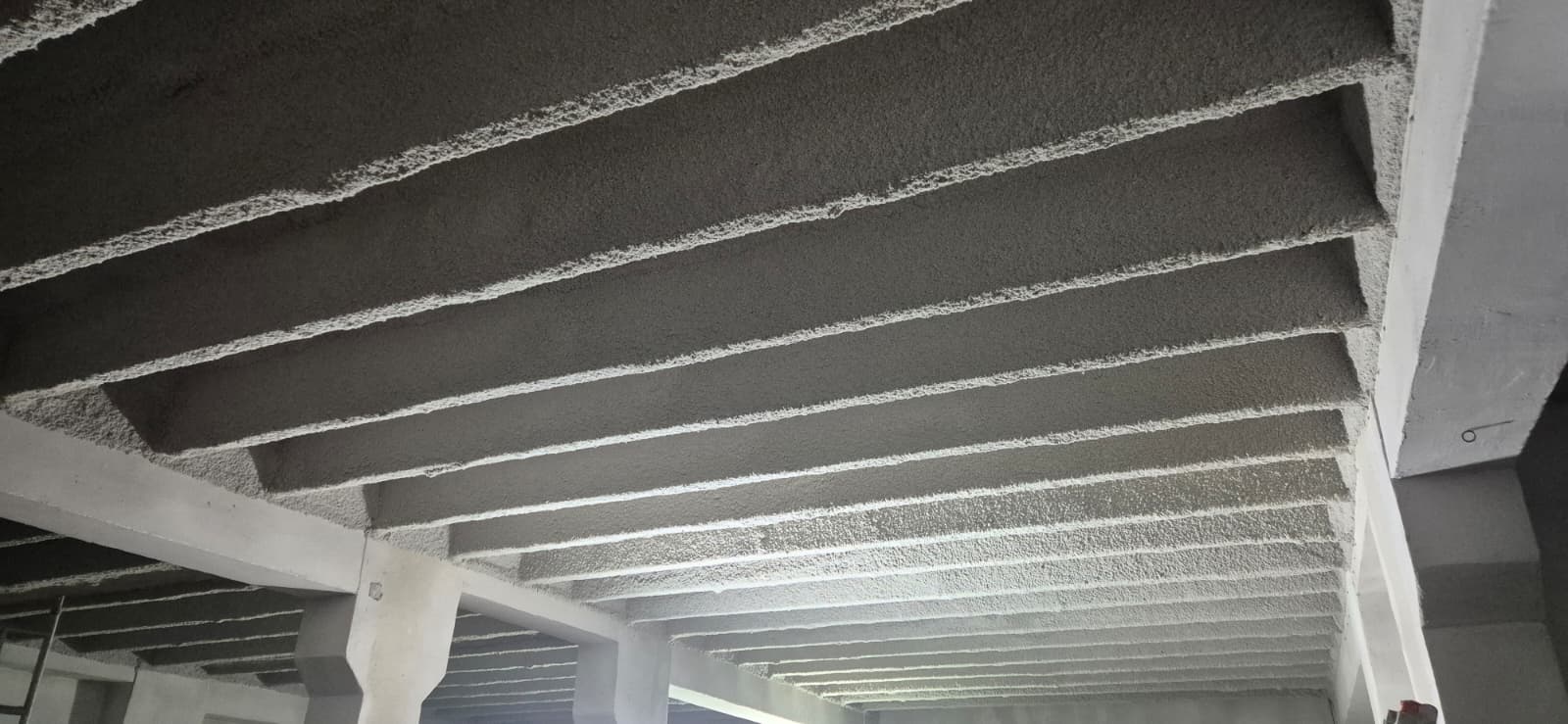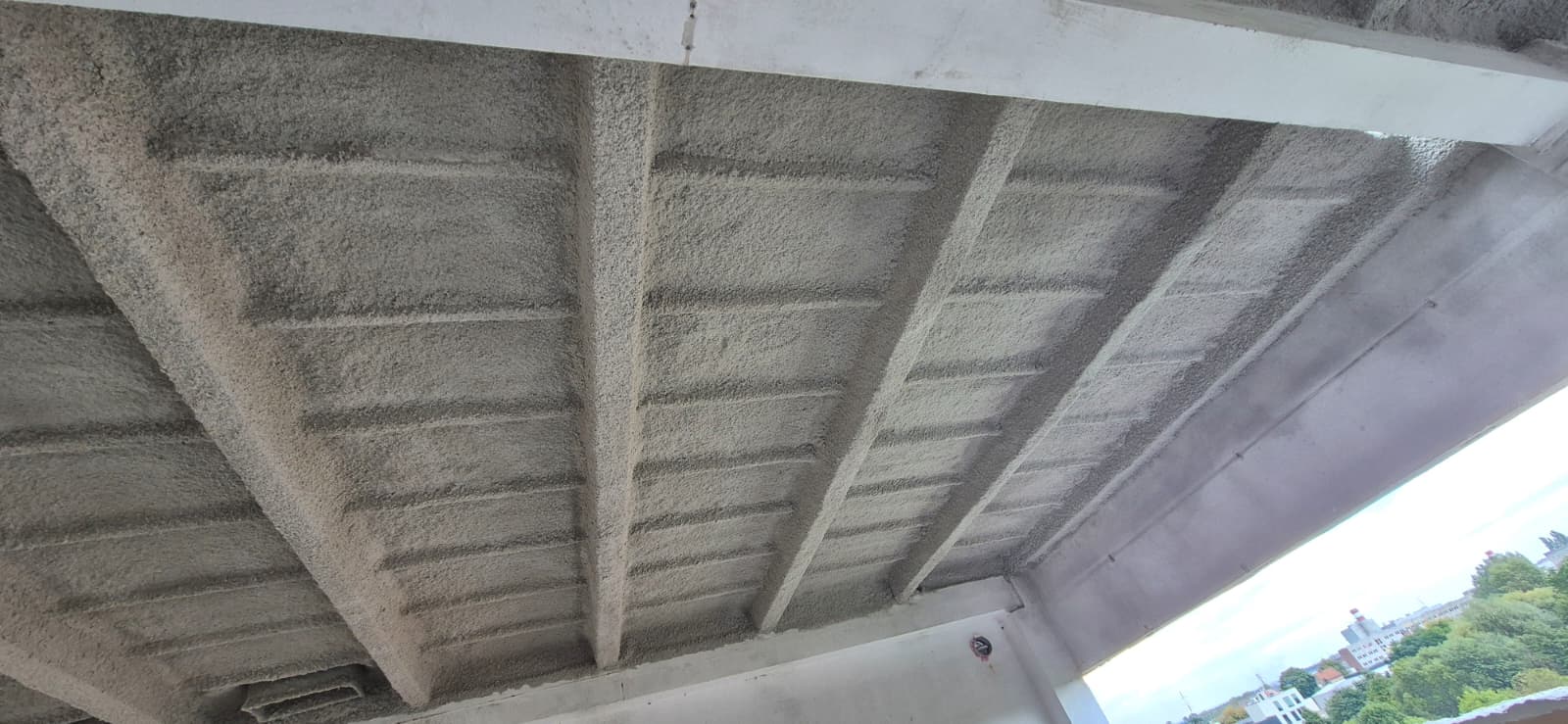 Zabezpieczenie przeciwpożarowe stropów z płyt prefabrykowanych TT nad piwnicą, parterem, I piętrem, II piętrem, III piętrem o powierzchni łącznej około 4000 m2 w systemie Mercor Tecwool F do klasy odporności ogniowej REI120.
