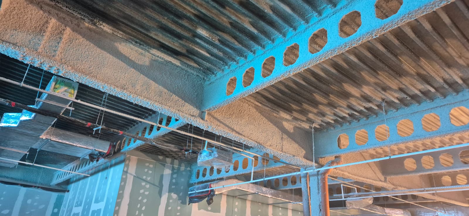 Zabezpieczenie przeciwpożarowe stalowych elementów konstrukcji, w systemie mcr Tecwool F, do klasy odporności ogniowej R 30.